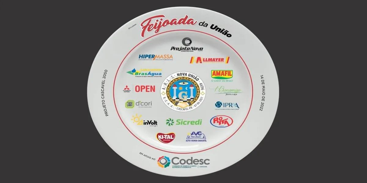 O evento que terá renda revertida ao projeto Cascavel 2050, liberado pelo Codesc- Conselho de Desenvolvimento Econômico Sustentável de Cascavel, ganha o engajamento das entidades em Feijoada da União, organizada pela Loja Maçônica Nova União em Cascavel.