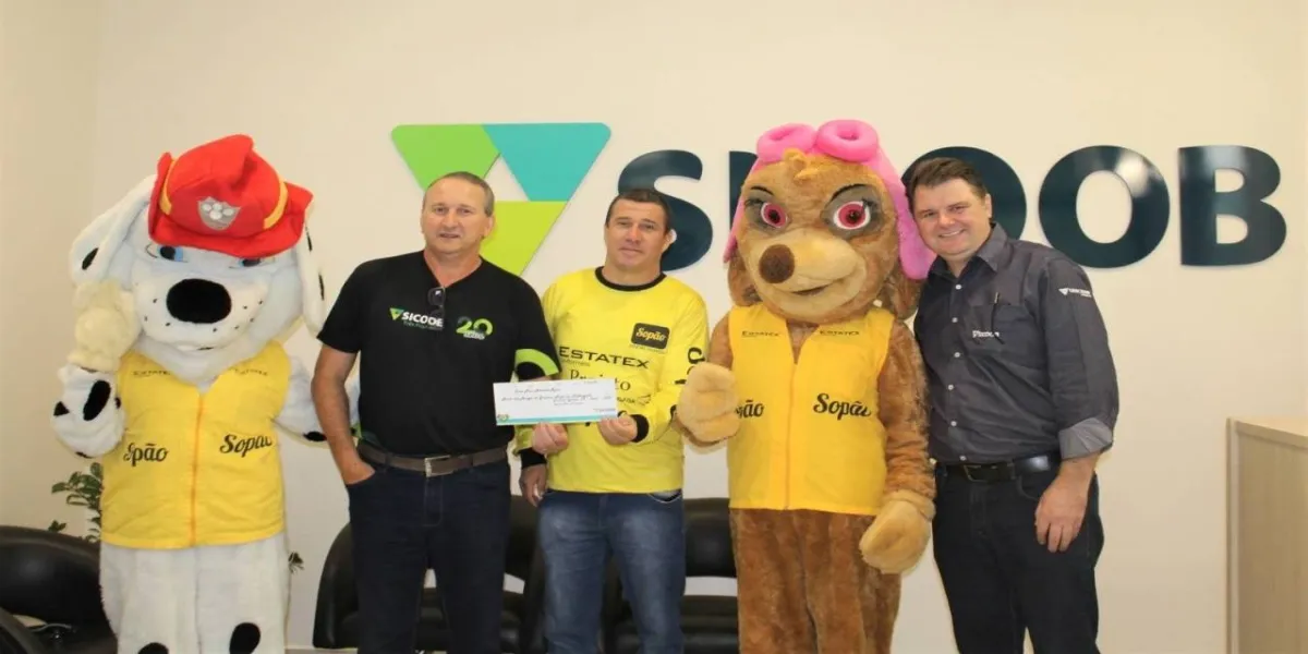 O coordenador da entidade, Johnson Mateus Santos, recebeu o cheque simbólico dos diretores Administrativo e Financeiro, Renato Schafranski, e de Negócios, Conderlei Lorenzetti.