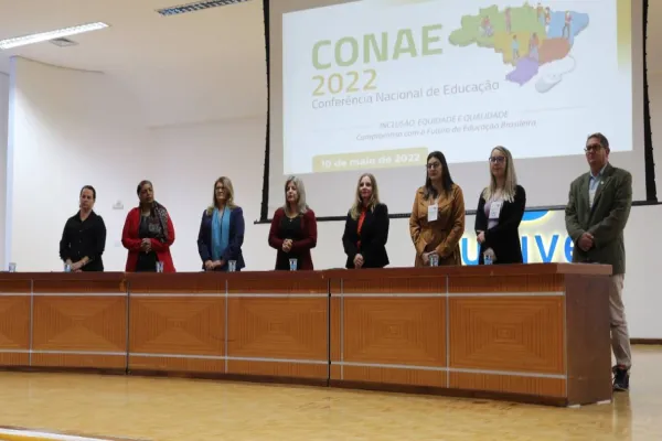 A secretária municipal de Educação de Cascavel, Marcia Baldini, fez parte da mesa de abertura do evento, representando os secretários municipais de Educação, enquanto presidente da Undime Paraná (União Nacional dos Dirigentes Municipais de Educação). Marcia definiu um momento como ímpar, tendo em vista que a Conae acontece geralmente a cada 10 anos e que é necessária a participação de todos para na discussão e elaboração das políticas educacionais. “Não podemos esquecer que todo o nosso trabalho, toda a nossa ação, ela tem que ser voltada para o aluno, para os futuros cidadãos que ocuparão os espaços escolares na educação básica e superior do nosso país”, afirmou a secretária, acrescentando que “nos últimos anos, principalmente nestes últimos dois anos, muitas legislações foram aprovadas no Congresso Nacional e outras estão em finalização de aprovação”, a exemplo do Novo Fundeb, reforçando que há muito para refletir e discutir em termos de políticas da Educação.