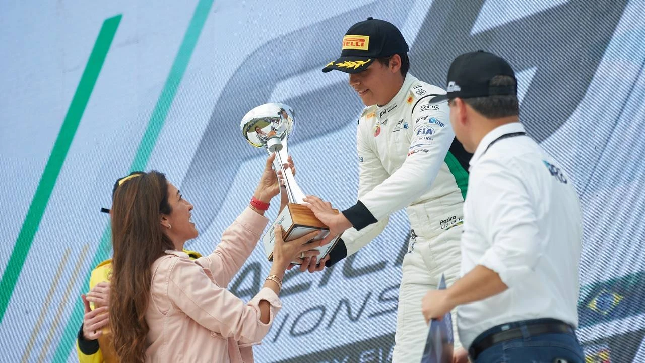 Liderança e vantagem — Pedro Clerot recebeu o troféu de vencedor das mãos de Fabiana Ecclestone, Vice-Presidente da FIA (Federação Internacional de Automobilismo) para a América do Sul. O piloto de 15 anos comemorou a jornada bem-sucedida neste início de campeonato.