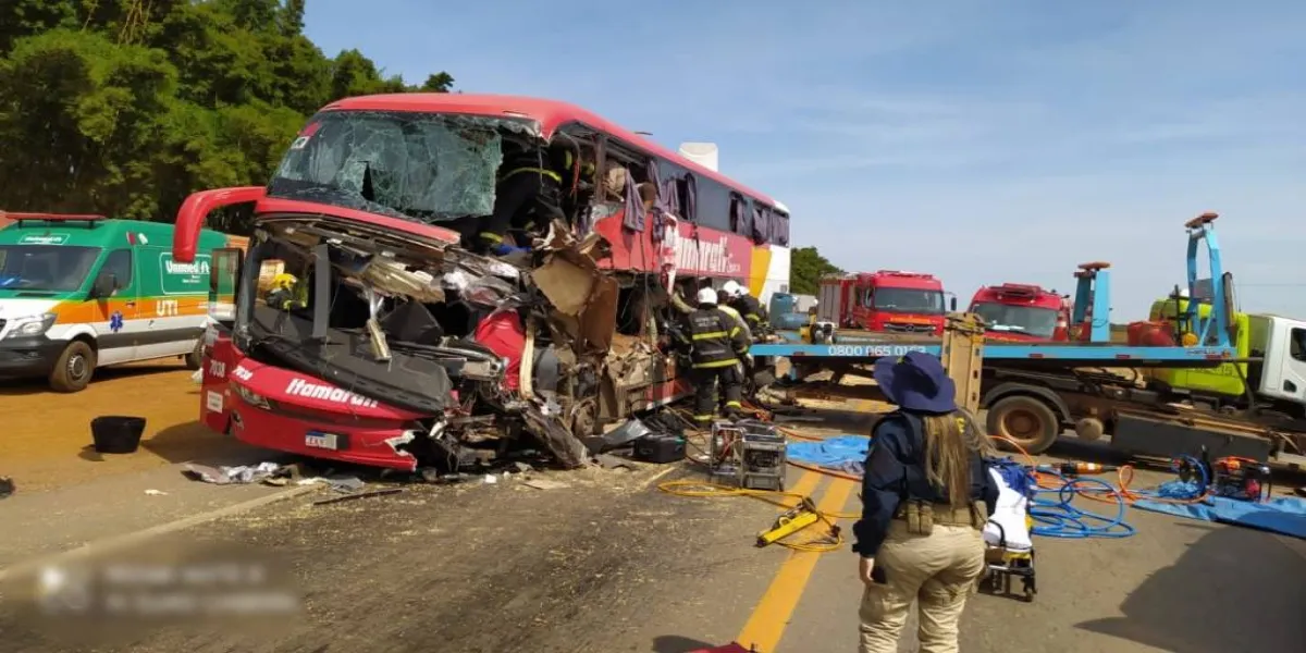 De acordo com a PRF, o ônibus transportava 45 passageiros. O motorista do veículo ficou preso às ferragens, teve o braço amputado no momento da batida, mas foi encontrado com vida.