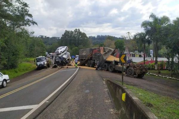 Homem morre após gravíssimo acidente de trânsito entre caminhões na BR-277