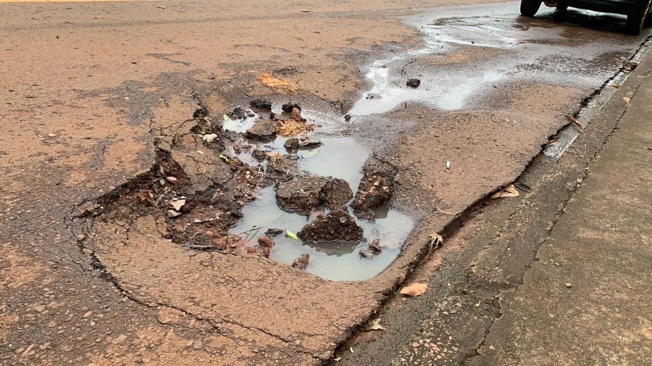 Segundo o morador da Rua Carajás, o asfalto está com afundamento aonde juntamente está tendo vazamento de esgoto. O fato é preocupante, pois o asfalto pode ceder por conta do vazamento.