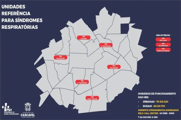 Oito unidades de saúde foram referenciadas para o atendimento, depois de agendado, para atendimento relacionado às queixas agudas: Unidades do Santo Onofre, Parque São Paulo, Cascavel Velho, Cancelli, Los Angeles, Morumbi, Brasmadeira e Riviera.