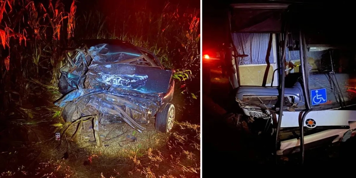 O acidente aconteceu própximo a Linha Madrugada e envolveram-se no sinistro um Gol de Palotina, conduzido por um rapaz de 50 anos e um ônibus da marca Volvo, conduzido por um rapaz de 49 anos.