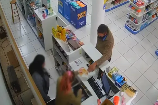Toda a movimentação foi registrada por câmeras de segurança, aonde é possível ver o autor do crime chegando a pé no comercio, quando rende duas funcionárias da farmácia e subtrai todo o valor do caixa.