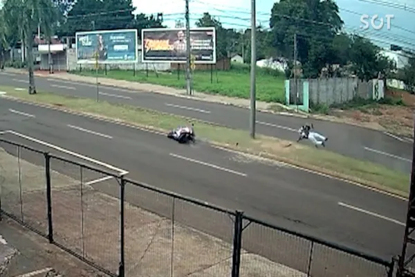 Motociclista fica gravemente ferido após queda na Av. Brasil; Câmeras flagram o acidente