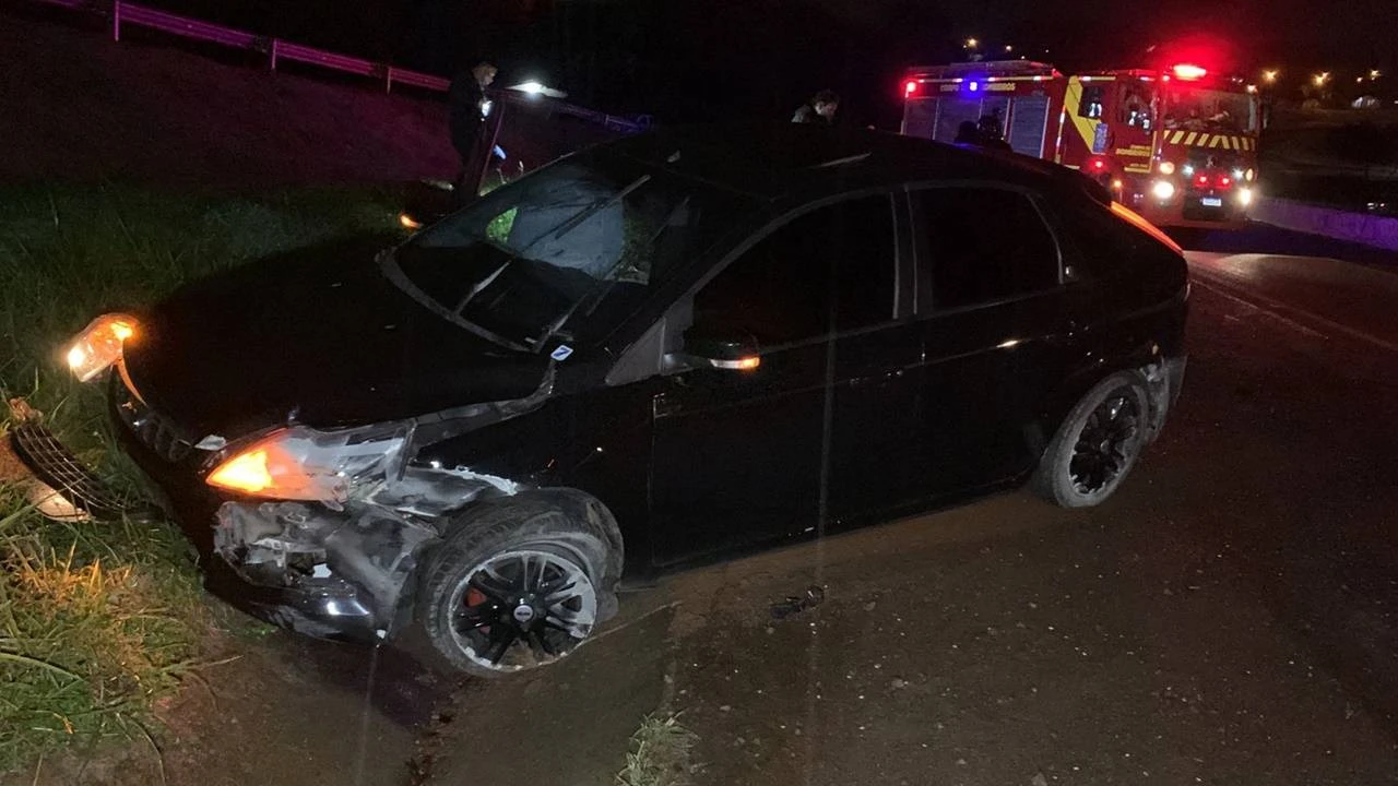 Segundo informações, um automóvel que seguia pela rodovia acabou colidindo em um barranco após o pneu estourar, o automóvel acabou rodando na pista, parando somente após colidir com o veículo.