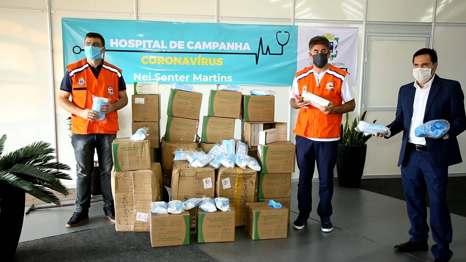 O prefeito Leonaldo Paranhos, o secretário de saúde, Tiago Stefanello e o presidente da Câmara de Vereadores, Alécio Espínola, receberam nesta segunda-feira (13) no Hospital de Campanha Ney Senter Martins, a doação de 12,5 mil máscaras e mais 10 mil luvas, que serão disponibilizadas para os servidores da saúde, que estão atuando nas UPAs e nas Unidades de Saúde do Município, no enfrentamento ao novo coronavírus (Covid-19). Para o prefeito Leonaldo Paranhos, essa ação é extremamente importante para garantir o atendimento aos pacientes e a segurança dos servidores.
