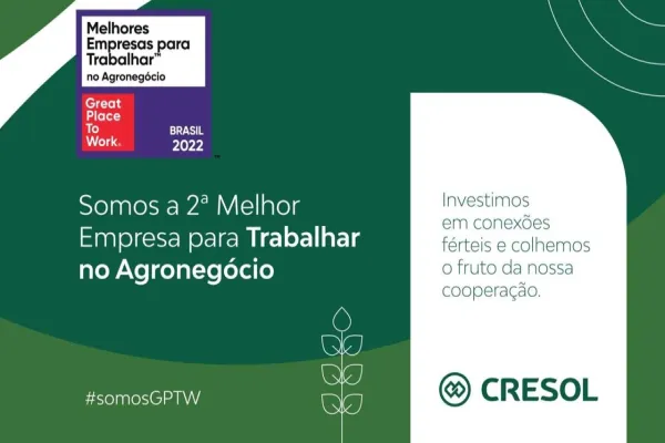 A Cresol é eleita, pelo terceiro ano consecutivo, uma das melhores empresas para trabalhar no agronegócio, por meio do ranking do GPTW (Great Place to Work). Conquistou, nesta edição, a segunda posição na categoria empresas de grande porte.