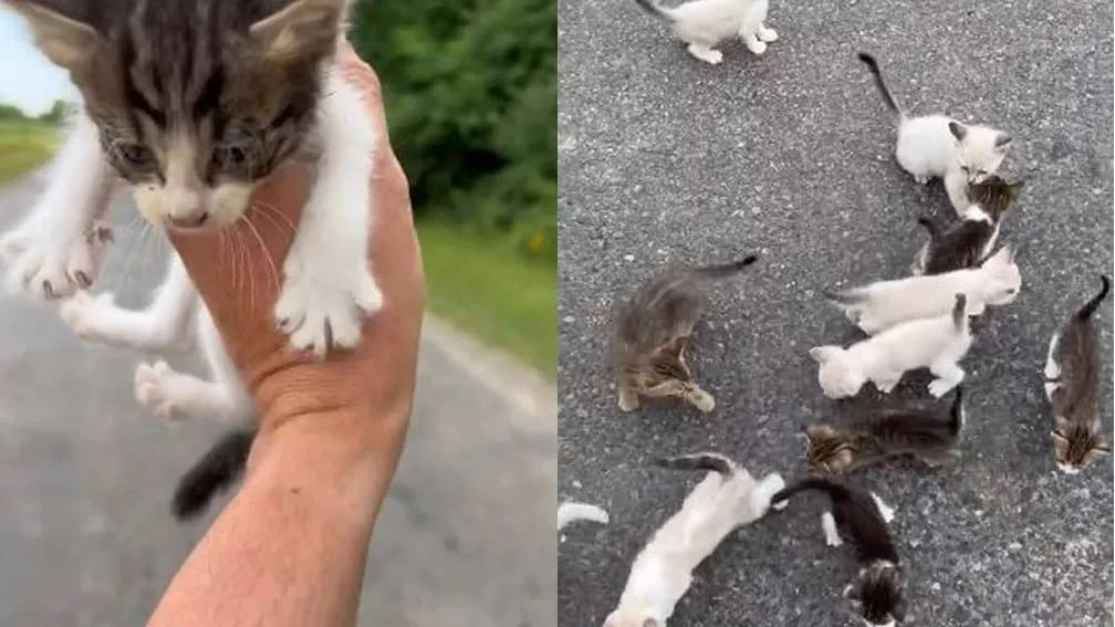 Homem para em estrada para resgatar gatinho e cai em 'emboscada' com resto da ninhada