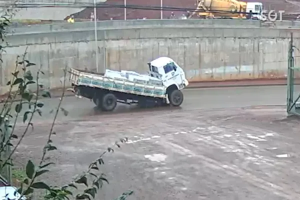 Uma câmera de segurança registrou no final da manhã da última sexta-feira (10), um caminhão partindo ao meio na marginal da BR-277 no trevo cataratas em Cascavel.