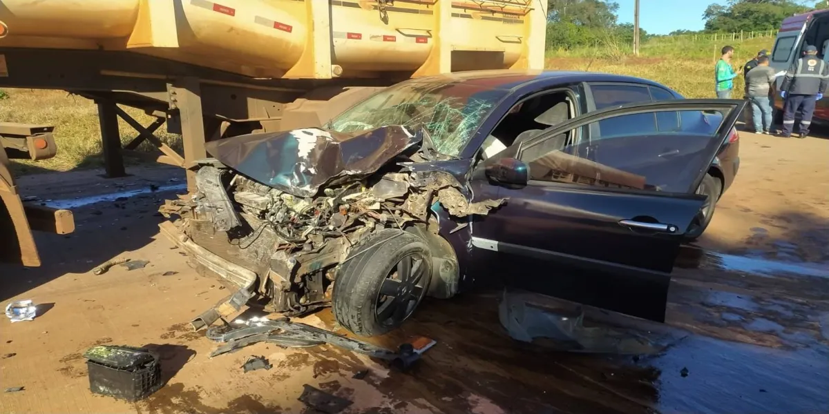 Colisão frontal entre carro e caminhão é registrado na BR-163 em Capitão