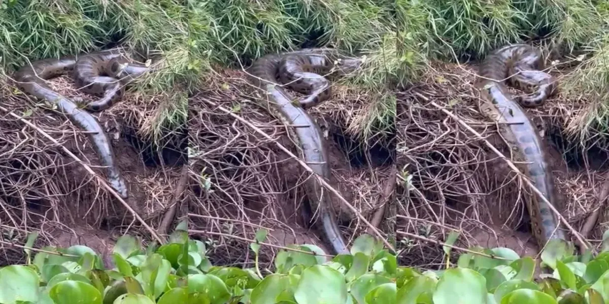 Sucuri gigante é vista entrando em rio após banho de sol: 'recarregando energias'