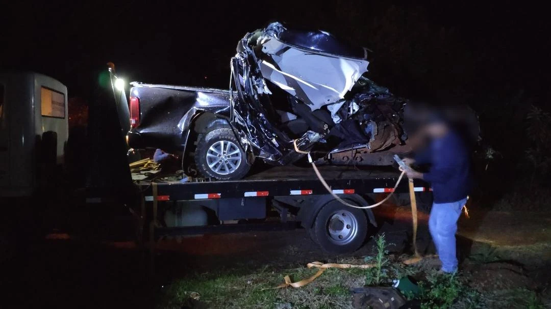 Conforme apurado o rapaz conduzia a caminhonete pela PR-180 quando no Km 474 colidiu com o caminhão. Coma força do impacto a caminhonete ficou totalmente destruída.