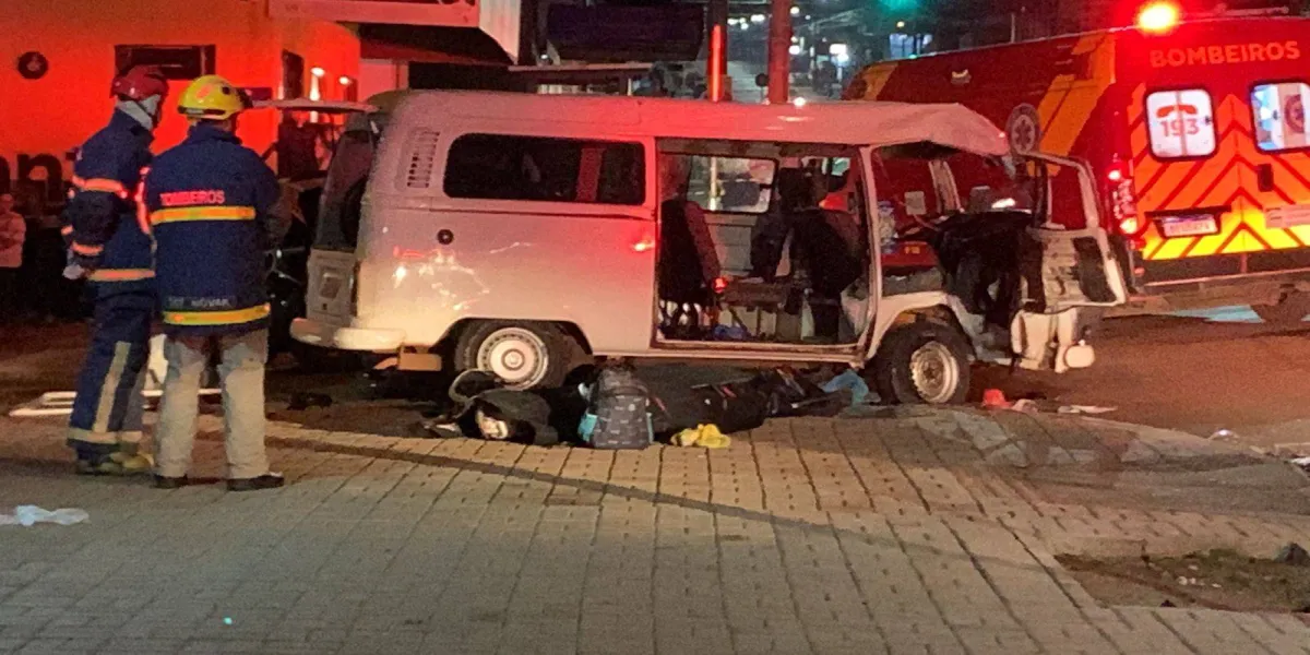 Com a colisão forte batida, a Kombi chegou rodar sobre a pista, jogando os ocupantes para fora do veículo.