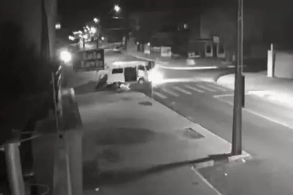 Imagens da câmera de segurança registraram na noite desta terça-feira (21), a fonte batida entre Kombi e Motocicleta no jardim Veneza em Cascavel.