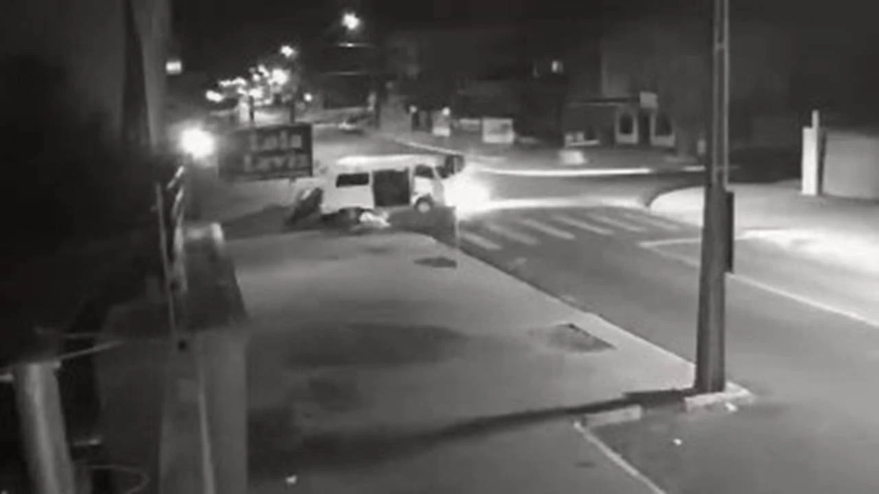 Na gravação é possível ver a Kombi se aproximando lentamente da Rua Milão, quando foi fortemente atingida pela moto que seguia pela Rua Italia sentido Bairro Universitario.