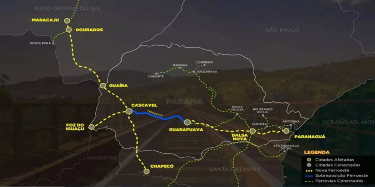 Na terça-feira, 21 de junho, foi lançado no Palácio Iguaçu o edital de consulta pública da Nova Ferroeste, ferrovia que sairá de Maracaju, no Mato Grosso do Sul, até o Porto de Paranaguá, um investimento total de R$ 35,8 bilhões. A novidade fica por conta do braço da obra que vai de Cascavel até Chapecó, no oeste de Santa Catarina, passando pelo Sudoeste do Paraná.