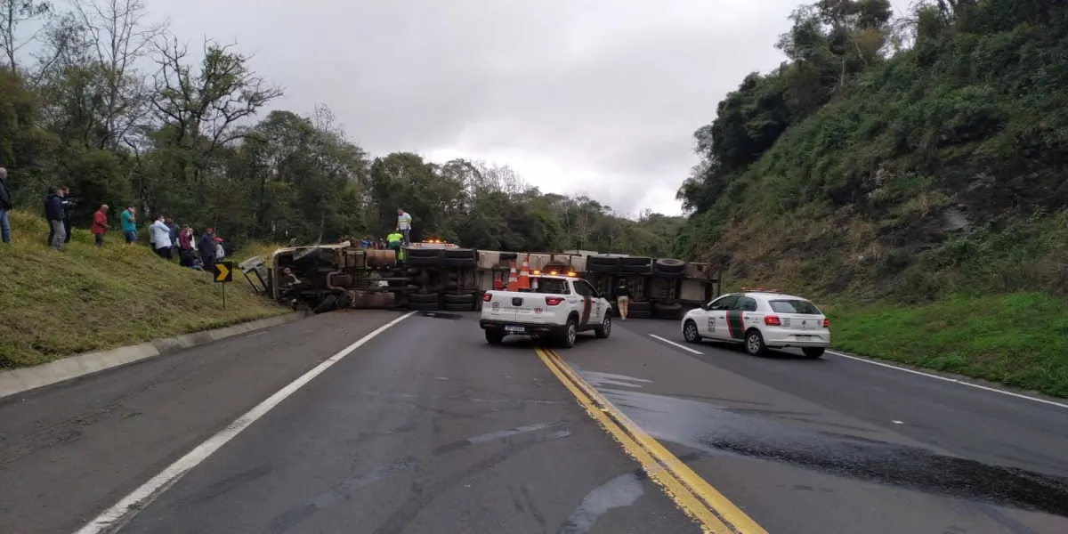 Tombamento de carreta é registrado na BR-277; A rodovia ficou totalmente interditada