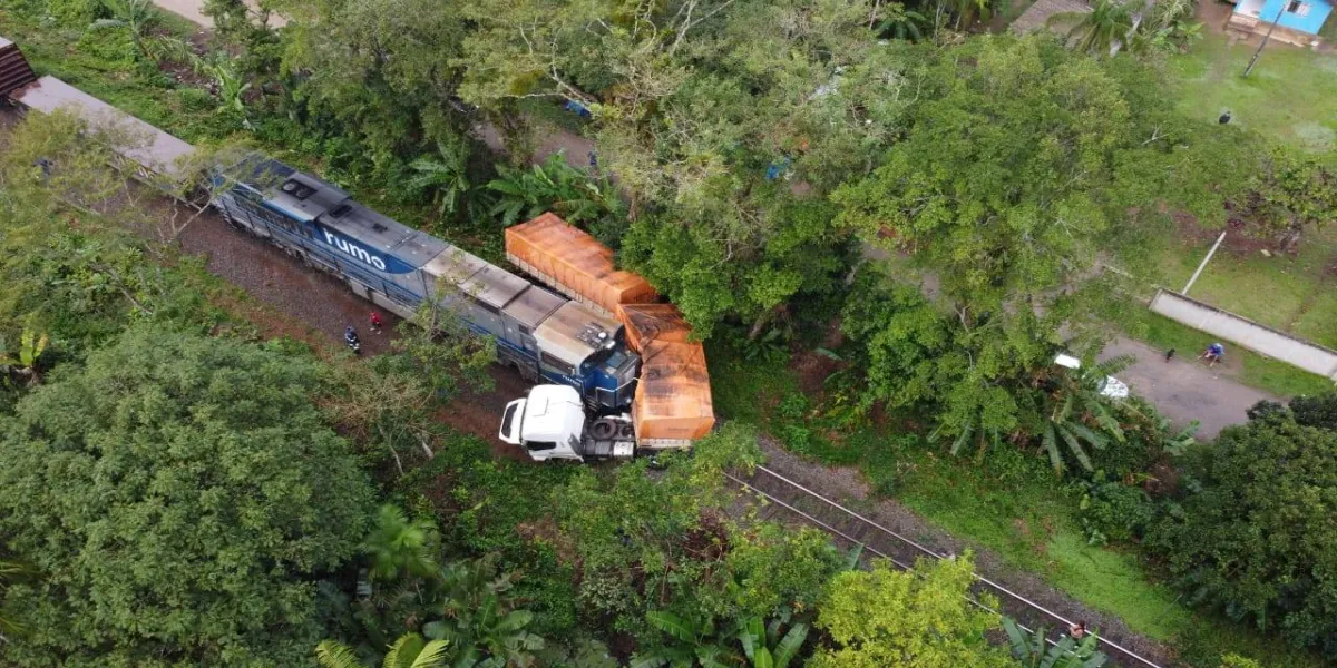 O motorista do caminhão e o operador da locomotiva da Rumo, não sofreram ferimentos...