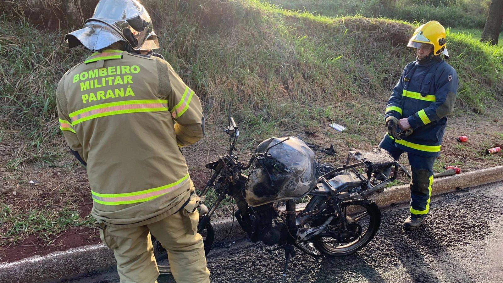 Entregador tem moto destruída em incêndio na Rua 25 de Agosto no centro de Cascavel