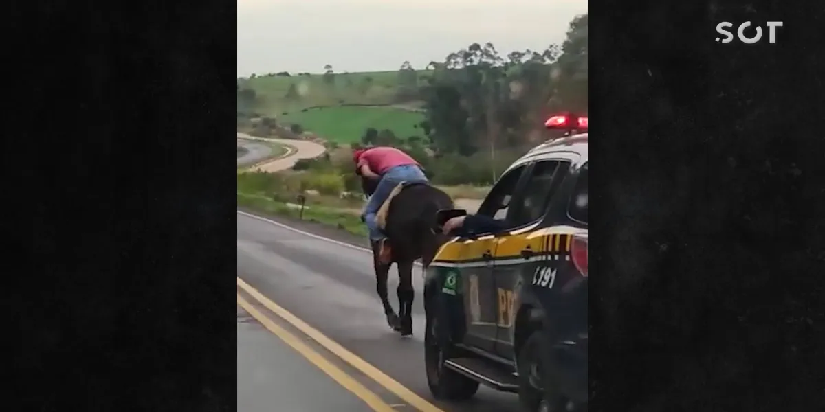 Diante dos fatos, o homem foi orientado e retirado da via, escorado em seu cavalo. Por sorte nada de grave ocorreu no trecho.