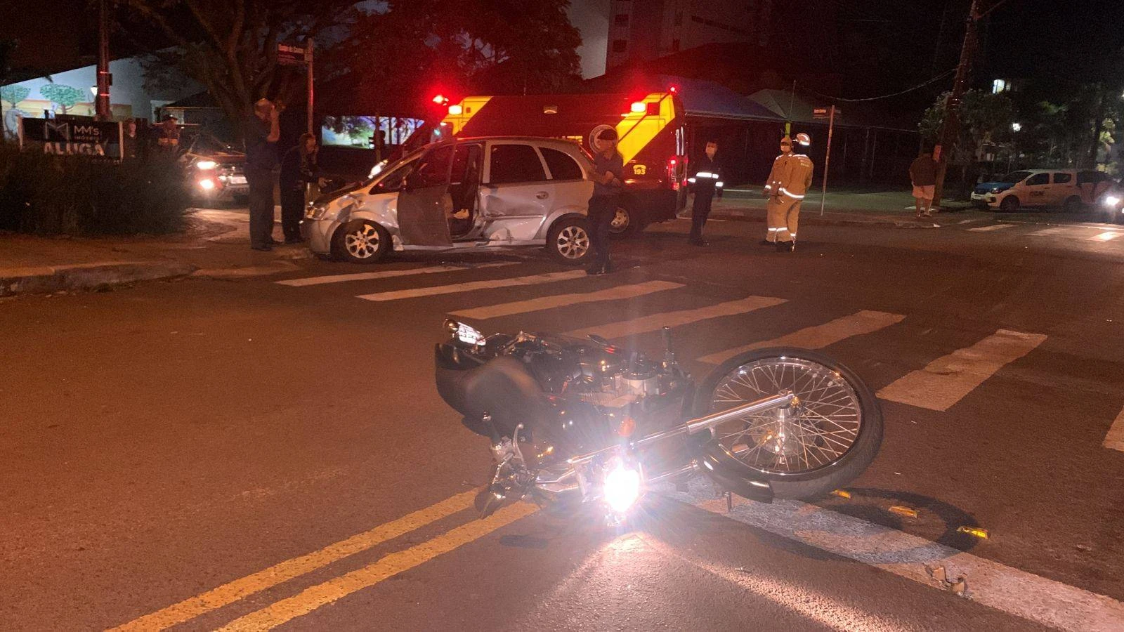 Um motociclista de 63 anos foi ferido na noite desta terça-feira (05/07), ao se envolver em uma colisão de trânsito na região central de Cascavel.