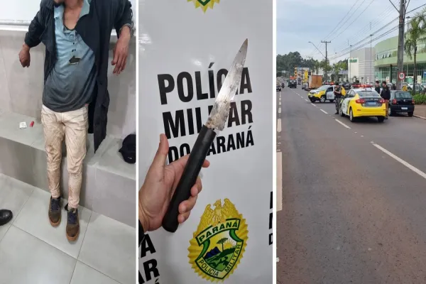 Ao tentar realizar abordagem ao mesmo, o rapaz partiu para cima da equipe policial com uma faca na mão, rapidamente os militares conseguiram escapar. Mas o suspeito tinha outra e jogou contra um dos policias.