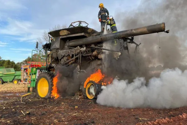 Os tratores da propriedade com tanques auxiliaram para conter as chamas que se alastraram rapidamente. O Corpo de Bombeiros que ainda está no local trabalhando controlou as chamas. Segundo informações, a máquina agrícola tem seguro e ninguém ficou ferido.