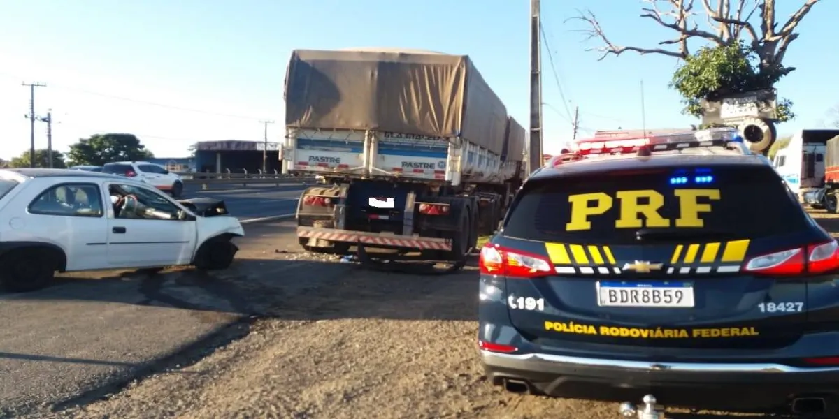 Na tarde desta terça-feira, 26/05/2020, por volta das 16 horas e 35 minutos, na Av. Presidente Kennedy (BR 376 Km 488,6), equipe PRF atendeu um acidente tipo colisão com objeto estático, em que um automóvel, GM/COrsa, colidiu num caminhão que estava estacionado entre o acostamento e a faixa de domínio.