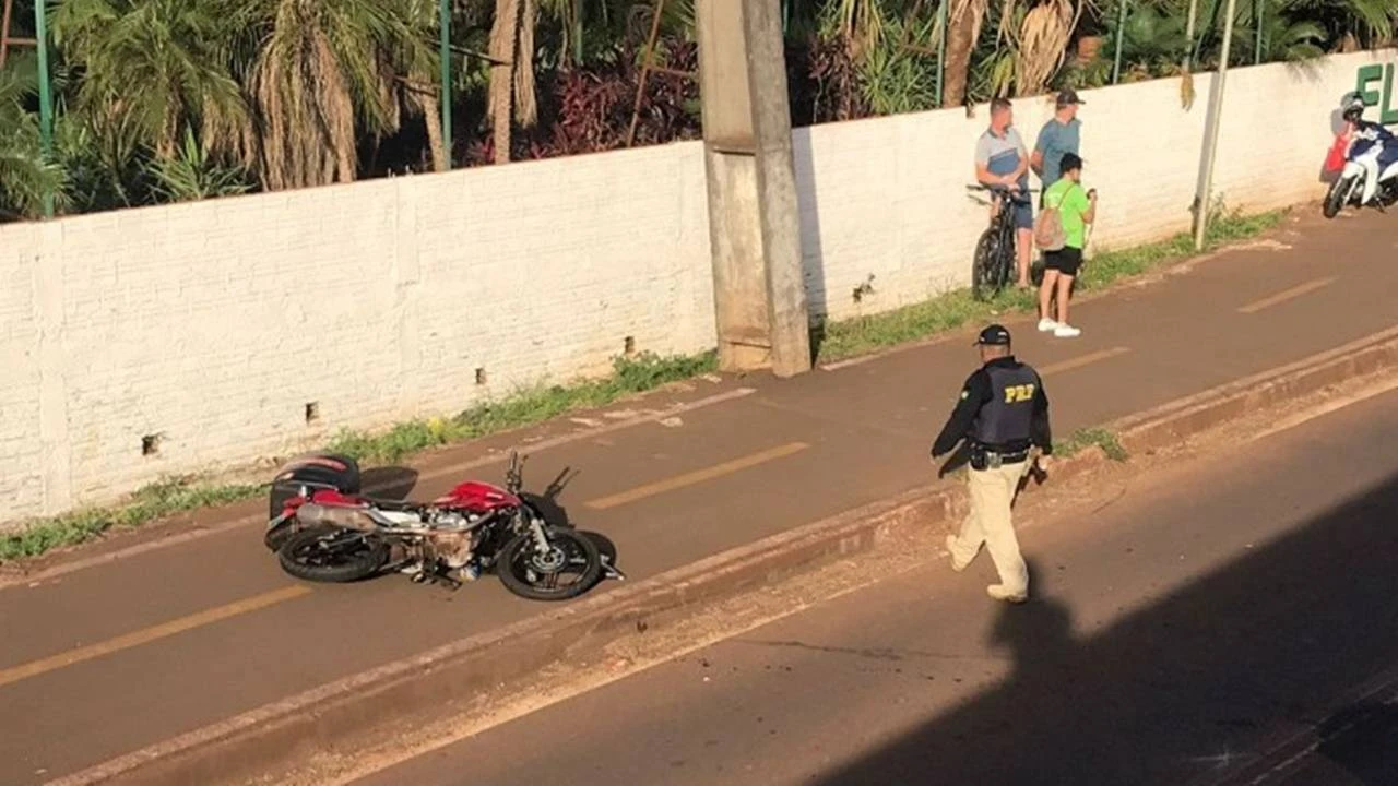 Com a força da colisão, a motocicleta foi arremessada sobre a mureta do viaduto e caiu na rua marginal na marginal, próximo ao trevo que dá acesso ao Jardim Primavera, em Marechal Rondon.