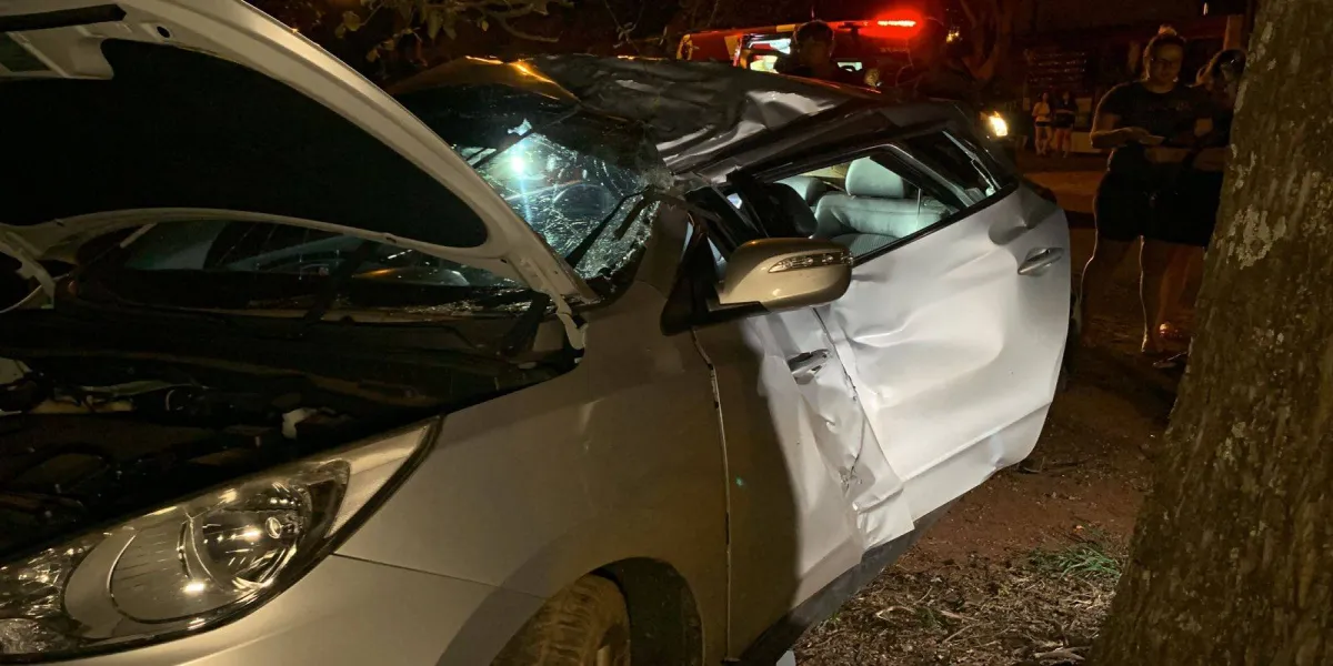 Quatro pessoas ficam feridas após carro colidir contra árvore em Cascavel