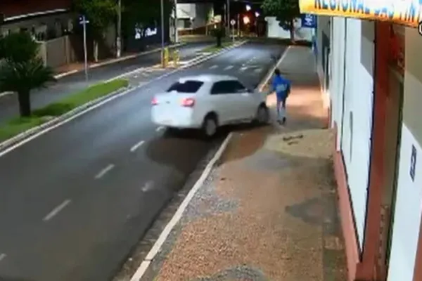Uma câmera de segurança flagrou o atropelamento na Avenida Tiradentes. Nas imagens, é possível ver o momento em que o carro atinge Ângelo, que é arremessado