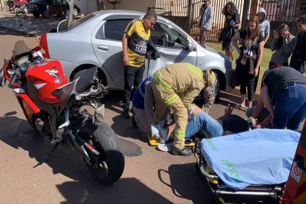 Um motociclista ficou gravemente ferido no início da tarde deste sábado (30), após colidir contra um carro, no bairro Brasília, em Cascavel.