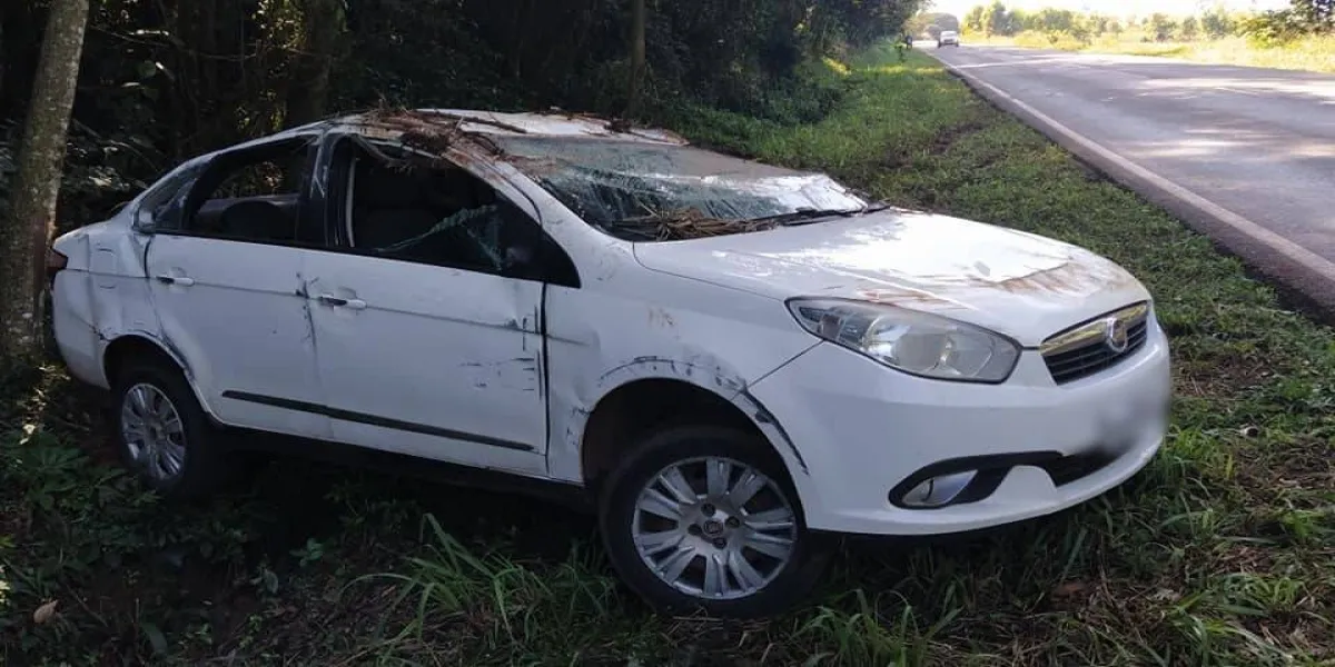 Fiat Siena capota na PR-473 em Quedas do Iguaçu; Caminhão envolvido não parou para prestar socorro