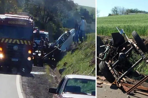 No Astra, o condutor e uma passageira que estava no banco da frente entraram em óbito no local. Uma mulher que estava na caretinha agrícola também não resistiu e morreu no local.