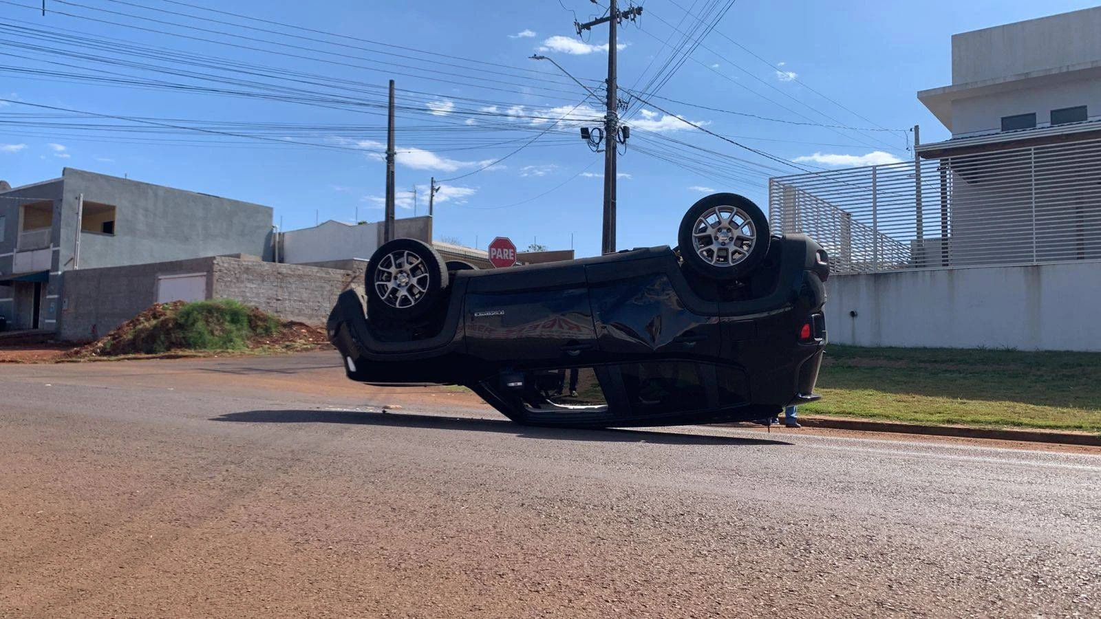 A primeira batida envolveu um Renault Clio e um Jeep Renegade, sendo que o Jeep acabou capotando após o forte impacto e parando com as quatro rodas para cima.