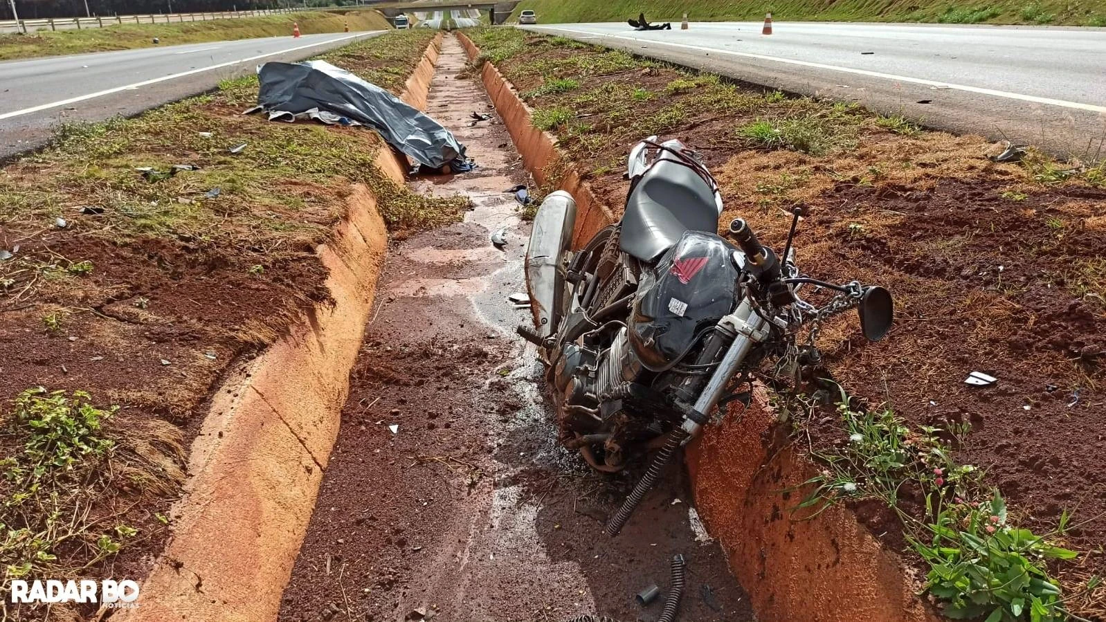 Após a colisão, a Parati capotou parando no canteiro central ficando com as rodas para cima, a moto também caiu na canaleta do canteiro central juntamente com o corpo do motociclista que teve morte instantânea e teve a perna direita amputada com a força do impacto.