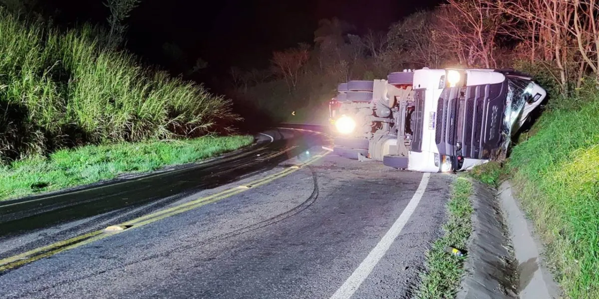 Caminhão carregado com óleo vegetal tomba e interdita PR-180, Marmeleiro e Campo Erê