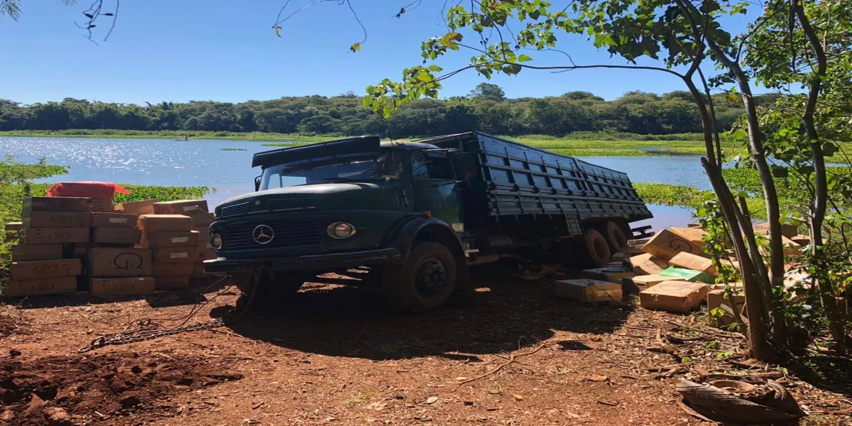 Durante patrulhamento de rotina na zona rural de Mercedes , policiais desta integração visualizaram presença de um caminhão atolado na barranca com grande quantidade de caixas de cigarros paraguaios no chão e iniciaram procedimento de aproximação silenciosa ao Porto Clandestino.