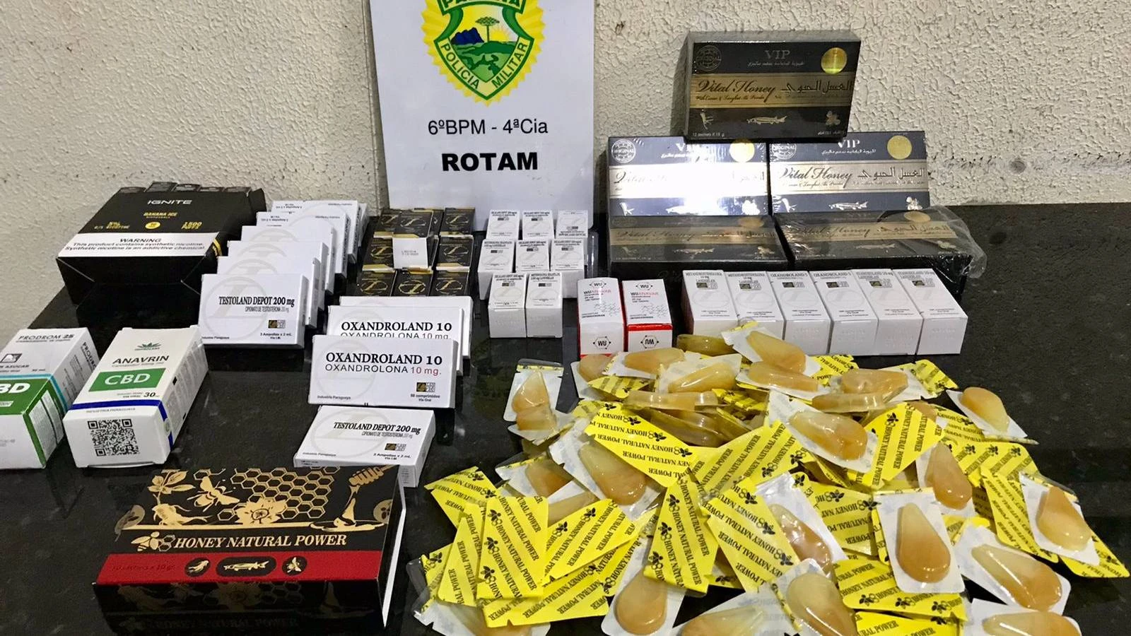De acordo com a PM, os militares realizavam fiscalização à um ônibus interestadual linha Foz/ São Paulo no município de Corbélia, momento em que localizaram na bagagem de um dos passageiros do sexo masculino com 29 anos de idade, diversos medicamentos oriundos do PY contendo estimulantes sexuais, anabolizantes e abortivos.