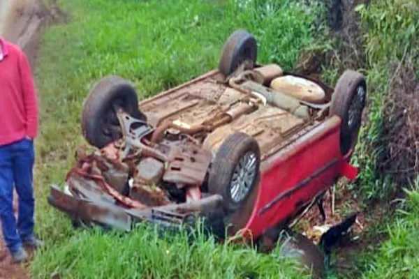 Três pessoas ficam feridas após capotamento na PR-364, em Laranjal