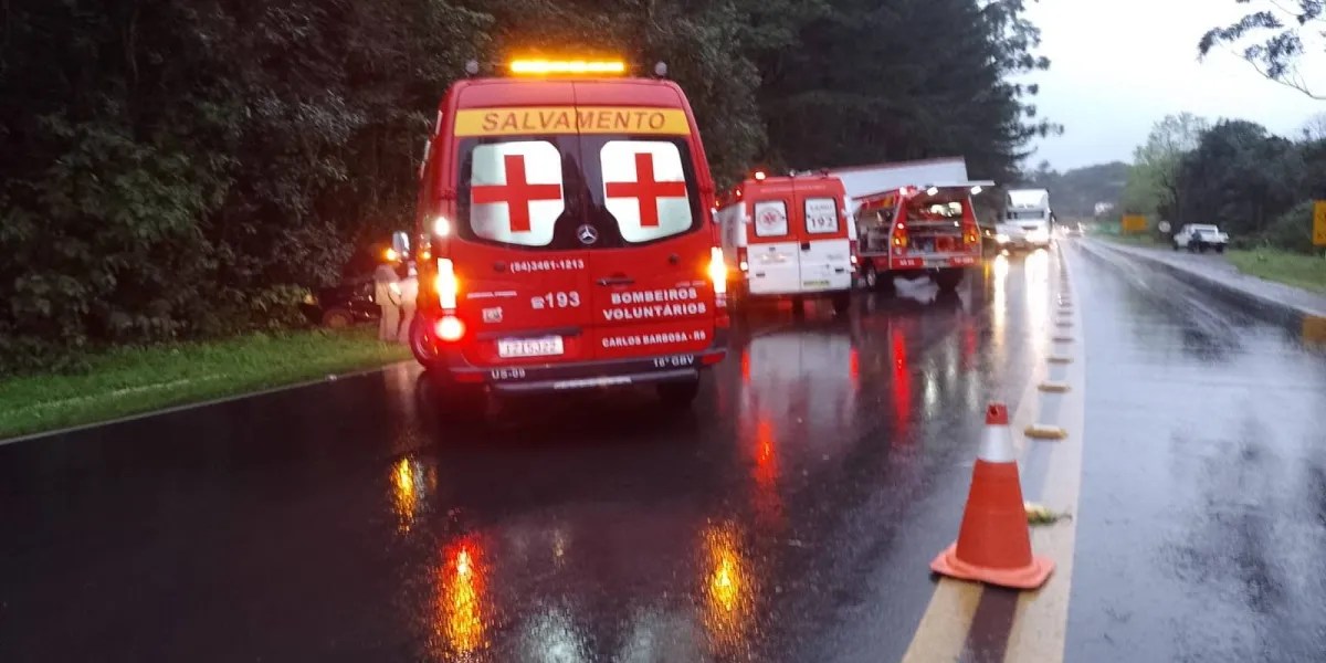 O caminhão fazia o sentido Carlos Barbosa para São Vendelino e colidiu na lateral do carro, que fazia o sentido contrário, segundo a PRF. Trânsito liberado.