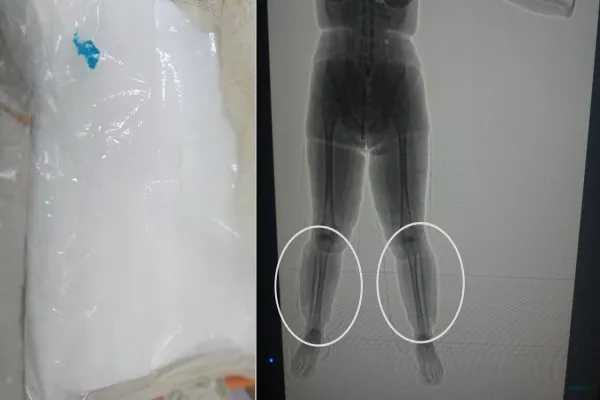 Os policiais federais, após fiscalização de rotina, identificaram a droga presa no corpo da passageira através do Body Scan.