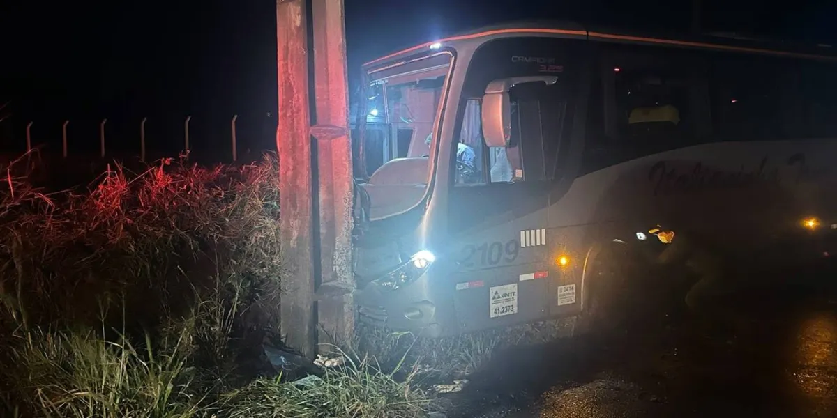 A colisão traseira acabou envolvendo dois ônibus de trabalhadores, sendo que um ainda acabou colidindo contra um poste de iluminação pública.