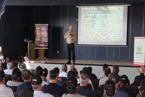 Tendências - Em 2030, já com oito bilhões de habitantes, o mundo produzirá e consumirá 3,4 bilhões de toneladas de grãos. De milho serão 1,5 bilhão de toneladas e dessas 250 milhões sairão do Brasil. Já na soja serão mais de 500 milhões de toneladas e dessas pelo menos 200 milhões serão colhidas aqui. No fim de sua exposição, Brandalizze respondeu a perguntas de técnicos e produtores rurais presentes à palestra.