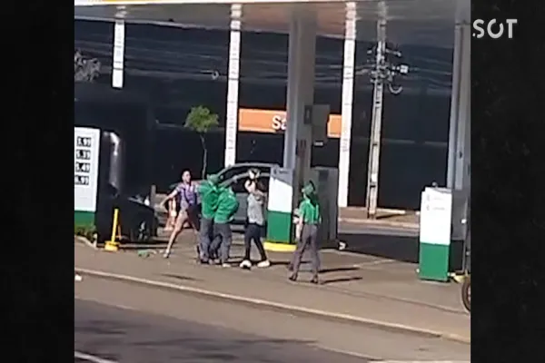 Frentistas do posto tentam apartar a briga, mas acabam sendo agredidos também. Após alguns segundo, todos sai do local. Não foi possível saber qual era a motivação do fato.