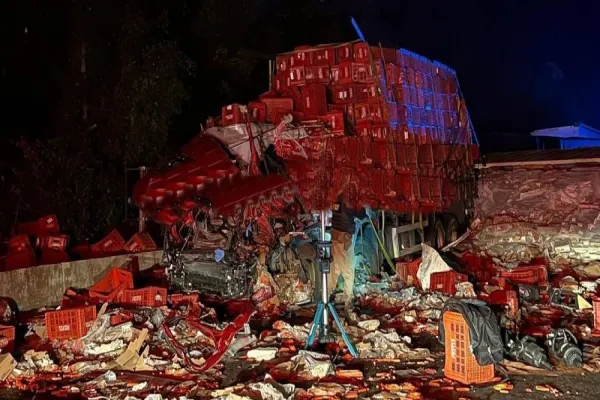 Segundo informações, um dos caminhões que estava carregado com salsichas, trafegava no sentido Sul (capital) quando tombou na mureta de proteção, deslizou por alguns metros e invadiu a pista contrária colidindo fortemente com outro caminhão de cor vermelha, placas de Curitiba, que seguia vazio no sentido norte. Na sequência, um terceiro caminhão, que também seguia sentido norte, acabou atingindo a traseira do caminhão vermelho.
