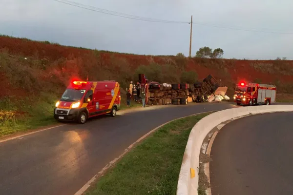 Segundo informações, o condutor do caminhão com placas de Palmeiras - Rio Grande do Sul, seguia pela BR-163 e quando foi acessar o contorno oeste que dá acesso a Br-467, perdeu o controle da direção e veio a tombar na lateral da pista.